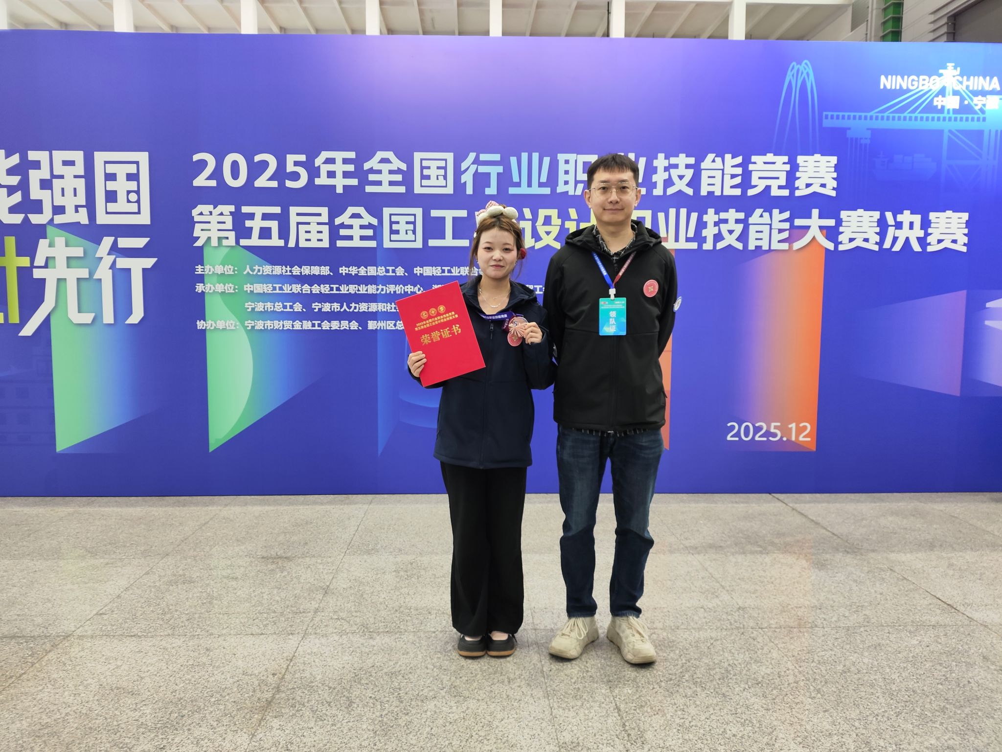2025年全国行业职业技能竞赛——第五届全国工业设计职业技能大赛决赛于12月7日至12日在浙江宁波圆满落幕,人工智能与大数据学院选派2024级大数据技术3班(中德双元创新班)耿世馨同学参加人工智能训练师赛项,代表新疆参赛,与来自全国各地的28支代表队的近450名选手同台竞技,在安巍老师的指导下,凭借扎实过硬的专业功底、敏锐创新的思维,最终荣获大赛三等奖,夺得铜牌一枚,不仅实现我校在人社部全国技能大赛中的奖项零突破,更创下该赛项新疆代表团历史最好成绩!