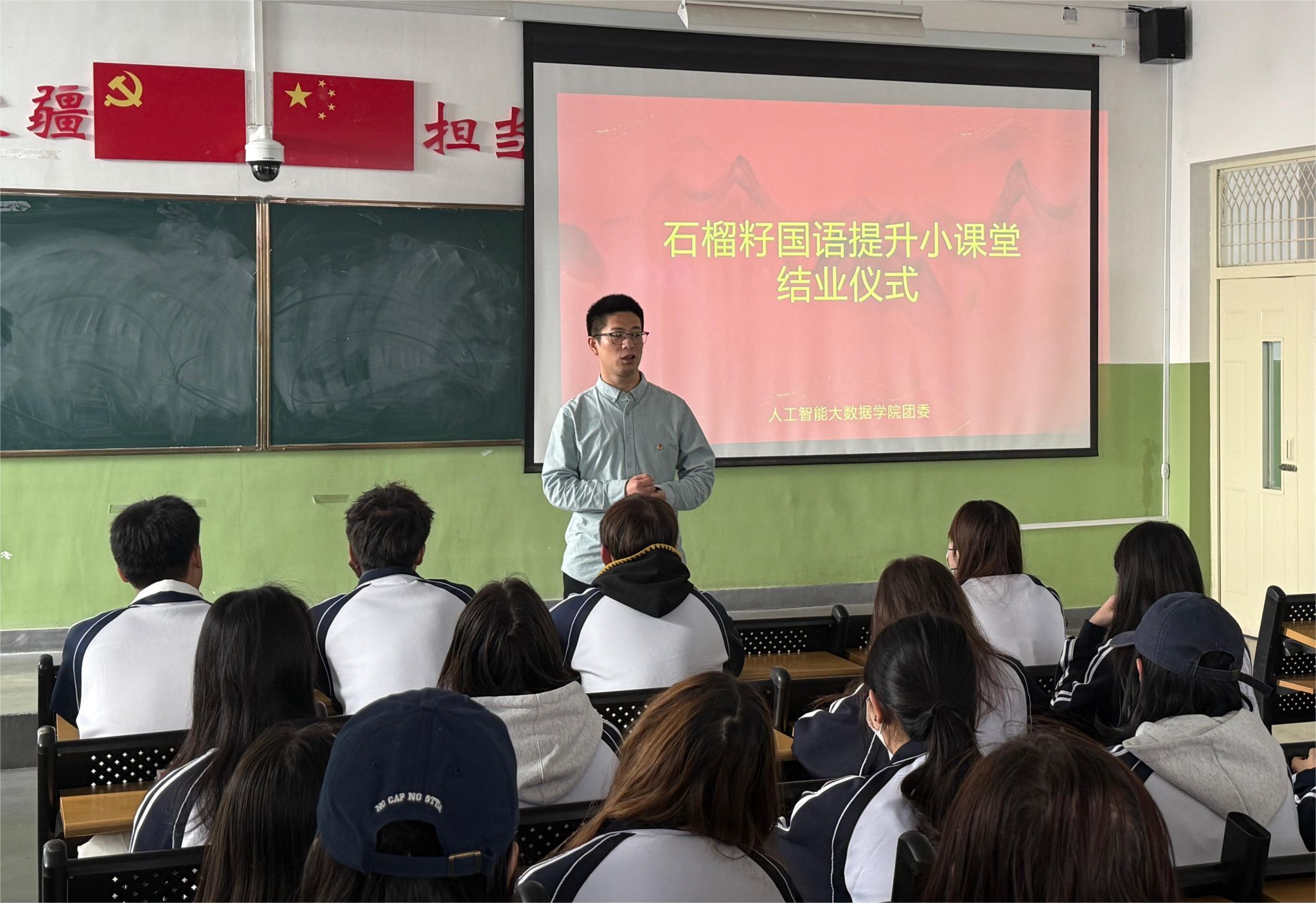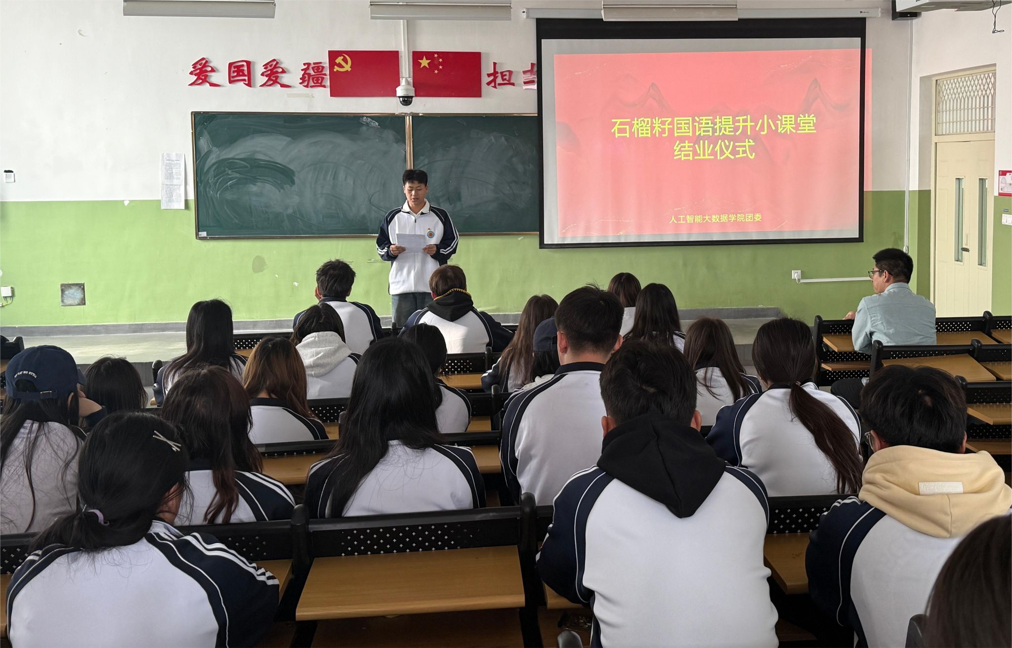 为持续深化铸牢中华民族共同体意识教育,巩固国家通用语言普及成果,11月18日,人工智能与大数据学院第三期“石榴籽国语提升小课堂”圆满完成全部授课任务,顺利结业。人工智能与大数据学院辅导员、班主任代表、优秀志愿者及全体学员共同参与结业仪式,为这段充满温暖与成长的互助之旅画上圆满句号。