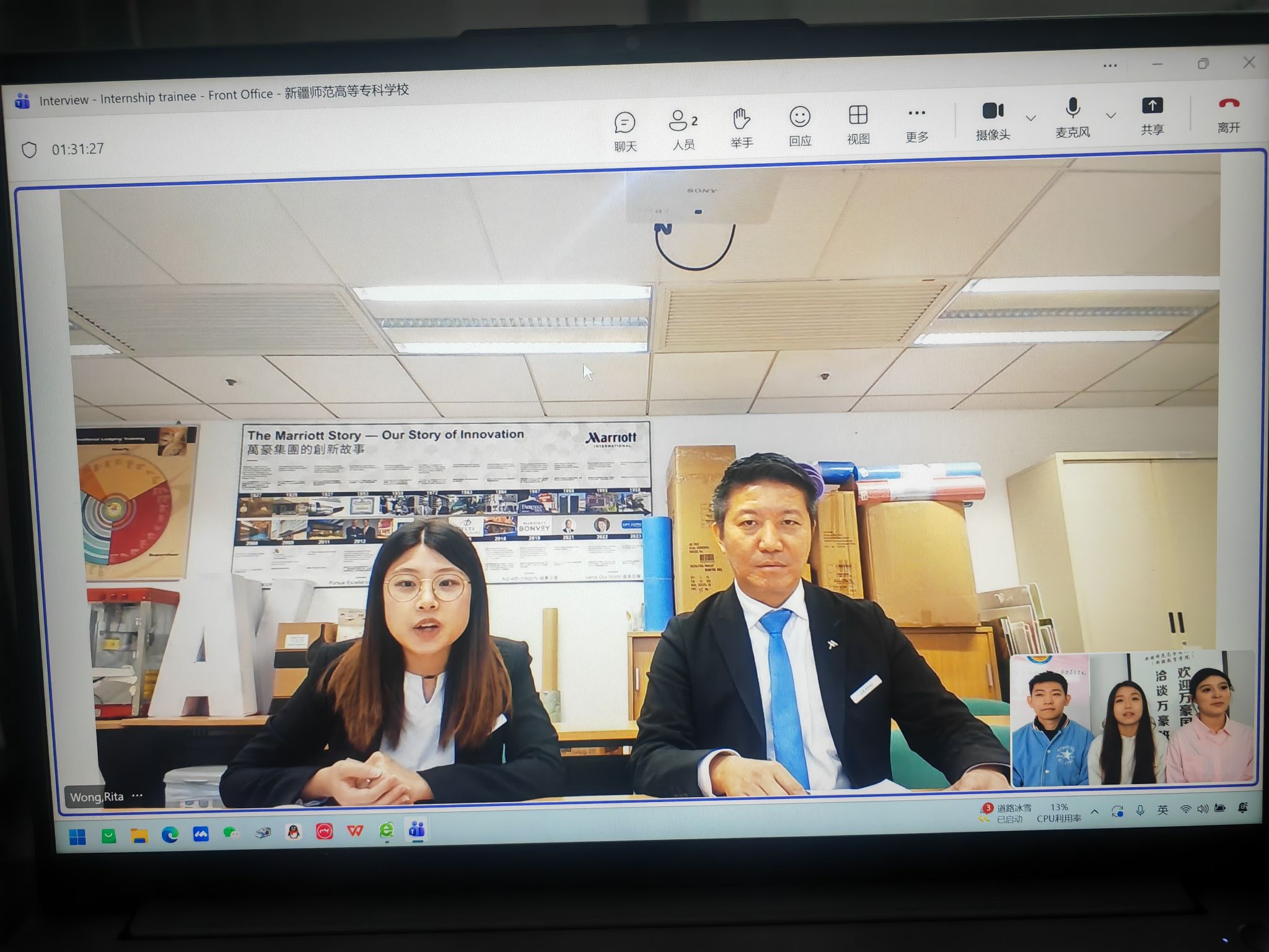 在面试过程中,学生们展现出良好的专业素养与国际视野,围绕酒店服务技能、跨文化沟通能力、职业发展规划等方面与万豪集团面试官进行了积极互动。同学们流利的英语表达能力、清晰的职业认知以及真诚的实习意愿赢得了面试官的高度认可。2024级酒店管理与数字化运营专业的阿依森巴提·门江同学在面试后表示,这次面试不仅检验了我的专业知识,还让我对即将到来的国际实习充满期待。我会努力把握机会,展现新疆学子的风采。2024级旅游英语专业的完思源同学表示,面试官的问题专业而深入,让我对酒店行业的国际化运营有了更具体的认识。如果能入选,我将全力以赴,在实践中提升自己。