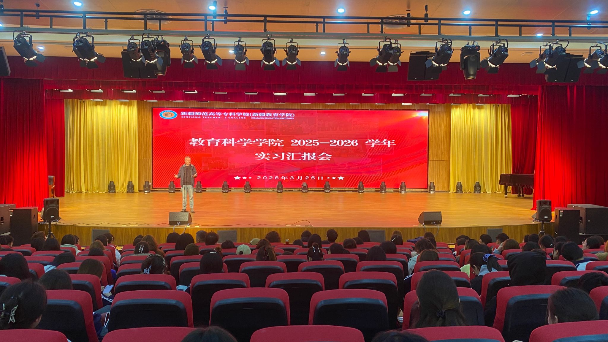 为全面检验学生实习实践成效,展示学院实践教学成果,搭建师生交流学习平台,3月25日,教育科学学院召开2025-2026学年实习汇报会。学院负责人、全体教职工以及2023级、2024级全体学生齐聚一堂,共同见证学子们的实习成长与风采绽放。