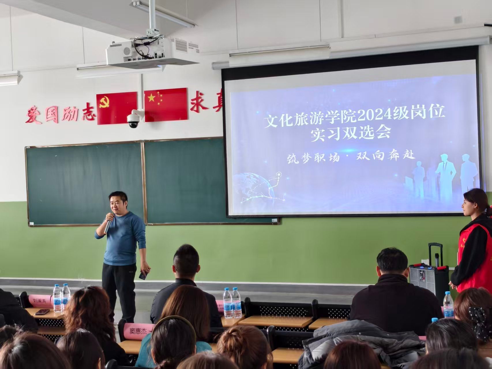 为深入贯彻落实现代职业教育高质量发展要求,深化产教融合、校企协同育人机制,精准对接文旅行业人才需求,搭建学生实习实践与企业人才招聘的双向桥梁,近日,我院文化旅游学院由旅游文化教研室精心组织、定制旅行管理与服务专业牵头,召开文旅企业与学生实习双向选择见面会。此次活动汇聚了兵团中国青年旅行社环疆分公司、新疆大桔旅行社、新疆心牧场国际旅行社等十家优质文旅企业,吸引了学院2023级本科生、2024级全体学生踊跃参与,为学生实习工作有序开展筑牢根基,为产教深度融合注入新动能。
